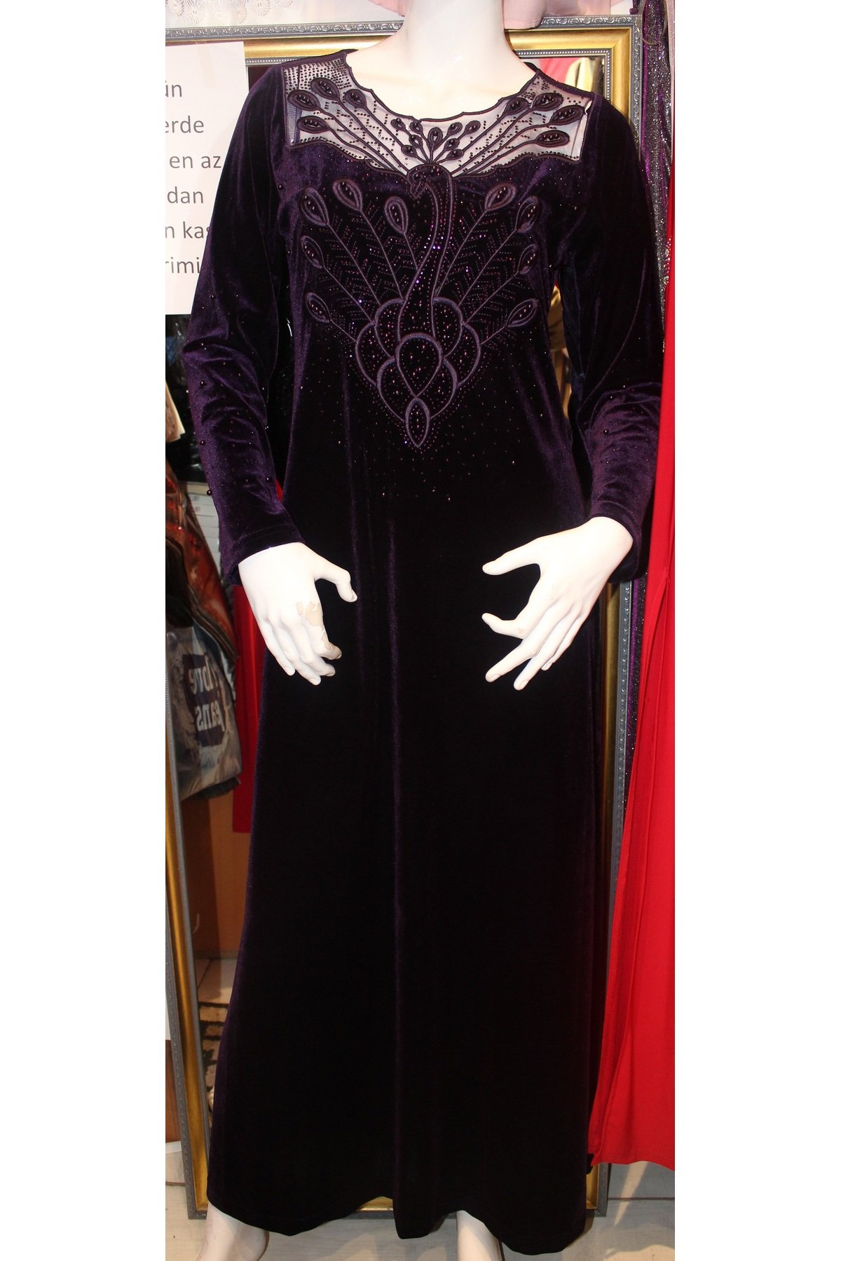 – Yumuşak dokusuyla dikkat çeken kadife materyali, cildinize nazikçe dokunurken şıklığınızı ön plana çıkarır.; – Klasik ve zamansız bir tarz sunan bu elbise, her türlü özel gününüzde zarafetinizi vurgular.; – Kadife kumaşı sayesinde hem konforlu hem de estetik bir görünüm sağlar; gece davetlerinden günlük kullanıma kadar geniş bir yelpazede tercih edilebilir.