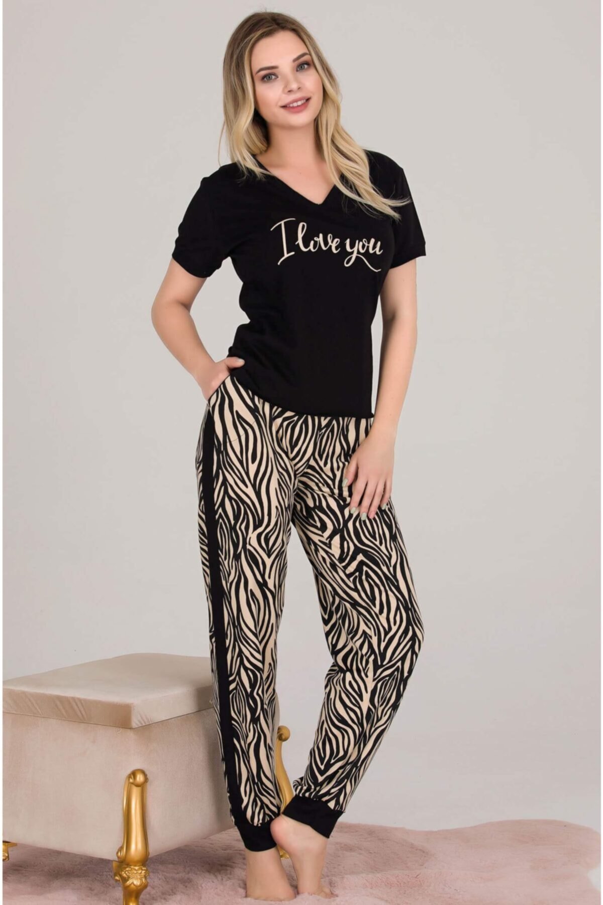 üstü siyah v yaka altı desenli çok şık ve rahat kullanım sağlayabilirsiniz