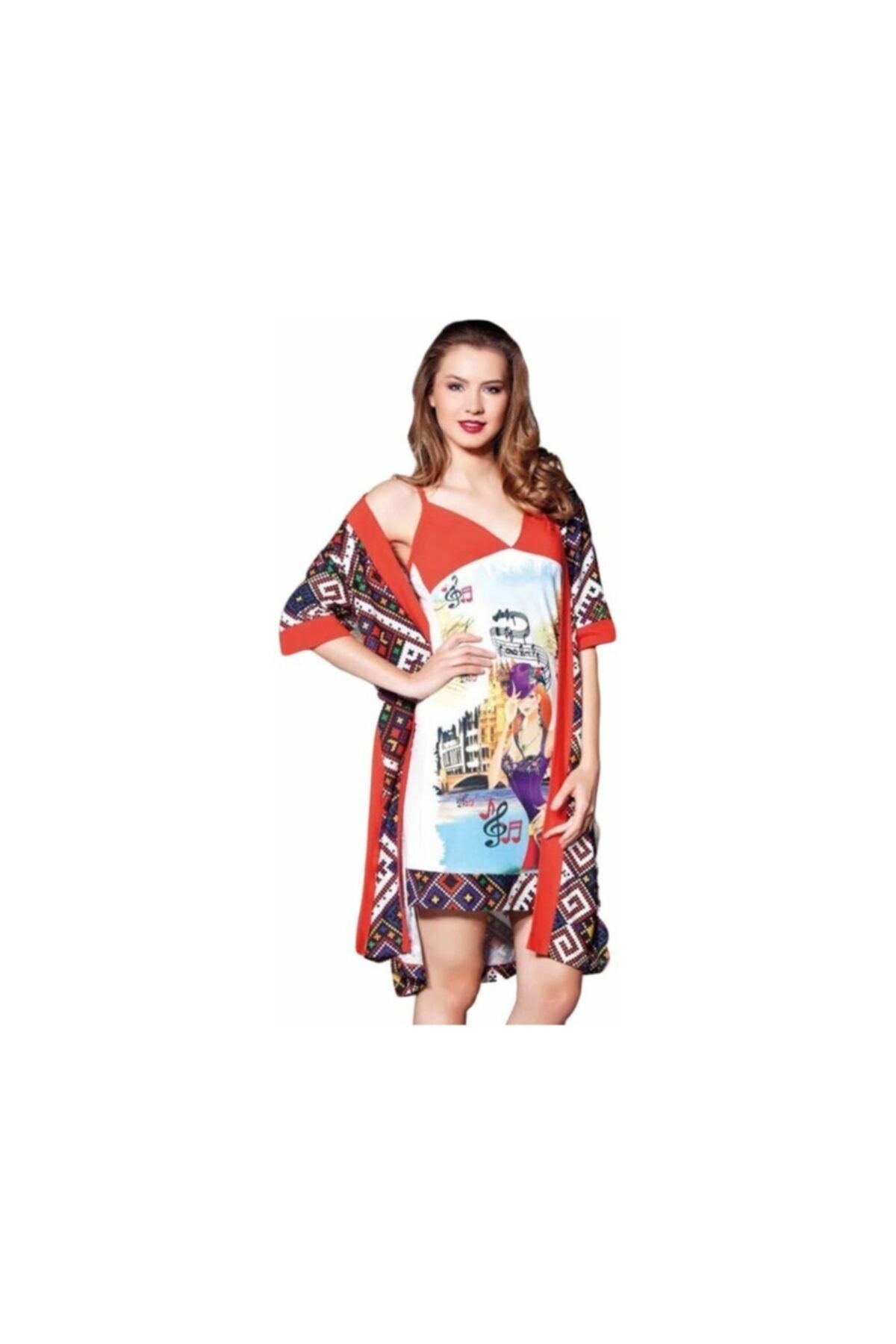 Baskılı tasarımı ile göz alıcı bir görünüm sunan bu sabahlık takımı, günlük kullanım için idealdir; Regular kalıp sayesinde rahat bir oturuş sağlar ve her vücut tipine uyum sağlar; Desenli yapısı ile şıklığı ve konforu bir arada sunan bu ürün, evde geçirilen zamanları daha keyifli hale getirir; Tüm yaş gruplarına hitap eden tasarımıyla geniş bir kullanıcı yelpazesine sahiptir; Uzun kollu tasarımı ile mevsim geçişlerinde ideal koruma sağlar ve şık bir görünüm kazandırır; Midi boyu sayesinde hem rahat hareket etme özgürlüğü sunar hem de zarif bir siluet oluşturur; Polyester materyali kolay bakım imkanı sunarken, dayanıklılığı ile uzun süreli kullanım vaat eder; Dokuma kumaş tipi, ürünün nefes alabilirliğini artırarak konforlu bir deneyim sağlar; Şerit detayları ile modern ve dinamik bir stil yaratırken renkli deseniyle enerjinizi yansıtır;